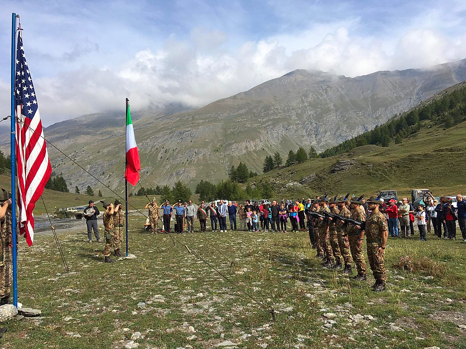 La cerimonia si è svolta ai 2104 metri del Pian della Milizia ed è stata aperta da Maurizio Beria, Sindaco di Sauze di Cesana e Presidente dell’Unione Montana Comuni Olimpici Via Lattea proseguendo poi con l’Alzabandiera, italiano e americano, il saluto delle Autorità e la celebrazione religiosa.
