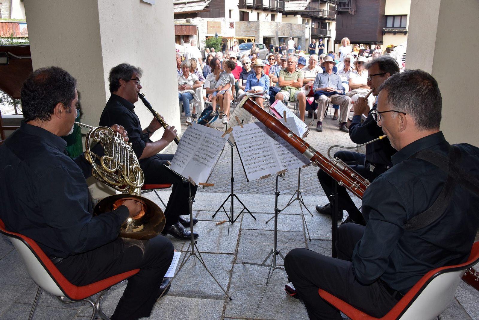 Domenica 18 agosto - Claviere (Sagrato della chiesa) h.16.15 - QUINTETTO PENTAFIATI. Musiche di Rota, Agay, Barber, Nielsen. (In caso di maltempo nei locali della chiesa).
