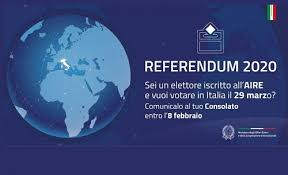 Per il referendum confermativo del 29 marzo 2020 i cittadini italiani iscritti all'A.I.R.E. (Anagrafe degli Italiani Residenti all'Estero) esercitano il voto all'estero per corrispondenza. Nel caso vogliano recarsi in Italia per votare, devono esercitare il diritto di opzione entro sabato 8 febbraio, compilando il modello e inviandolo al proprio Consolato di riferimento.
