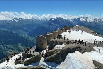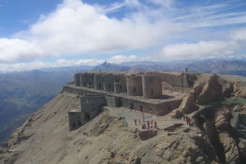 A 3.130 metri sulla vetta del Monte Chaberton si possono apprezzare i resti di quella che è stata la più alta fortificazione d'Europa, la Batteria dello Chaberton. Sono ancora ben visibili le otto torri su cui poggiavano i cannoni girevoli. Gli altri locali sono oramai in rovina e occupati dal ghiaccio. La costruzione del forte ebbe una notevole importanza strategica all'epoca delle due guerre mondiali; iniziò nel 1898, si protrasse per oltre vent'anni e fu semi distrutto nel 1940. Oggi, il Forte si trova in territorio francese ed è meta di escursionisti e appassionati di montagna.