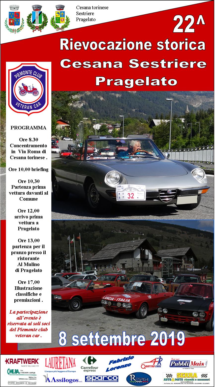Evento di regolarità per auto storiche, classiche o sportive, sul vecchio tracciato della celebre corsa in salita "Cesana-Sestriere" con ulteriore prova ed arrivo a Pragelato.