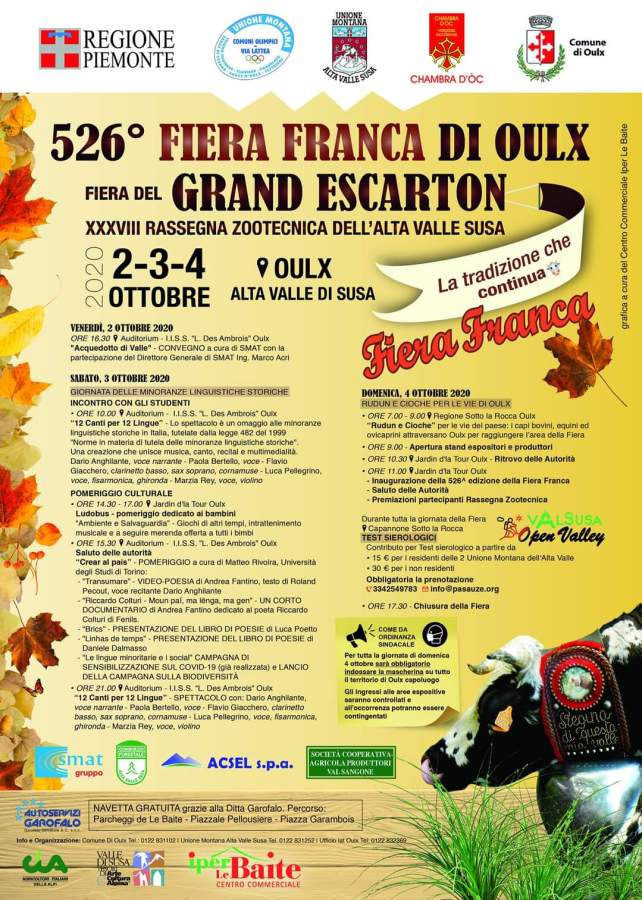 " La Tradizione continua" è il motto che accompagnerà la 526esima Fiera Franca di Oulx del Grand Escarton / XXXVIII Rassegna Zootecnica dell’Alta Valle Susa