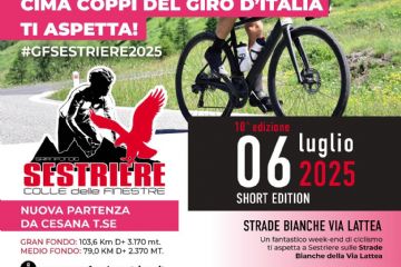 Corsa ciclistica da strada con nuova location di partenza da Cesana Torinese, arrivo a Meana di Susa e salita al Colle delle Finestre, discesa a Pourrieres, passaggio a Pragelato e arrivo a Sestriere. Due percorsi che toccano le nostre montagne: la gran fondo e la medio fondo.