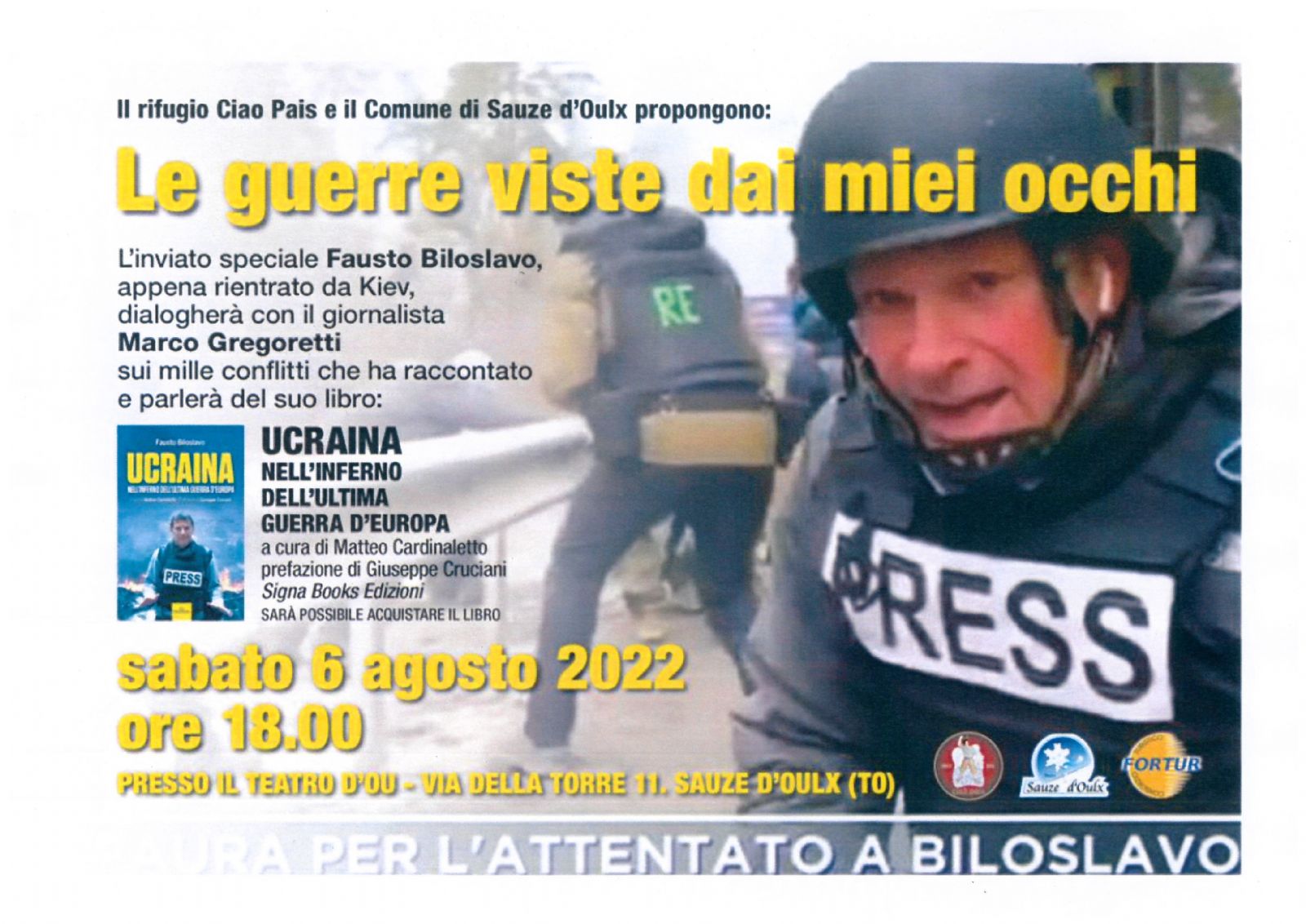 L'inviato speciale Fausto Biloslavo, appena rientrato da Kiev, dialogherà con il giornalista Marco Gregoretti sui mille conflitti che ha raccontato e parlerà del suo libro: "Ucraina nell'inferno dell'ultima guerra d'Europa" a cura di Matteo Cardinaletto prefazione di Giuseppe Cruciani Signa Books Edizioni.