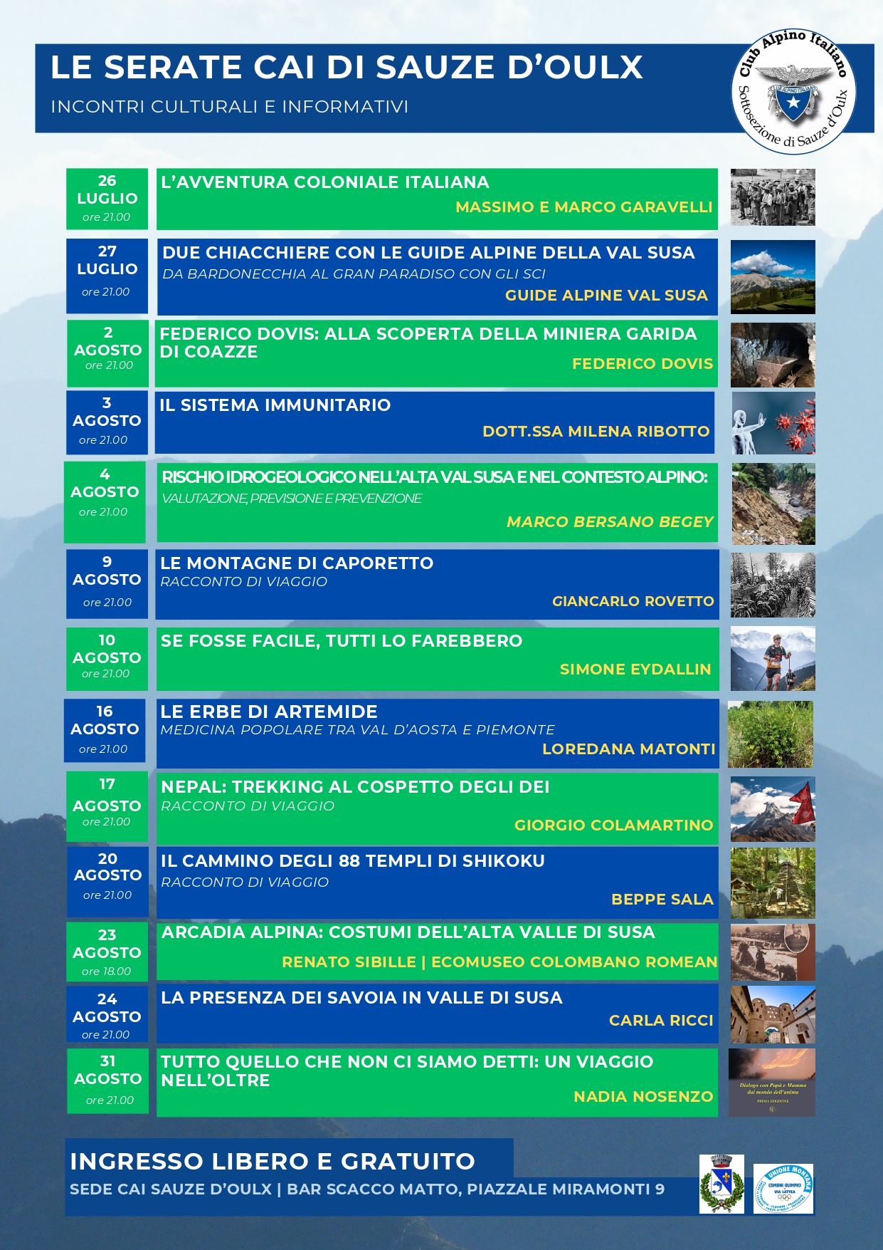 Incontri culturali ed informativi organizzati dalla sezione CAI di Sauze d'Oulx