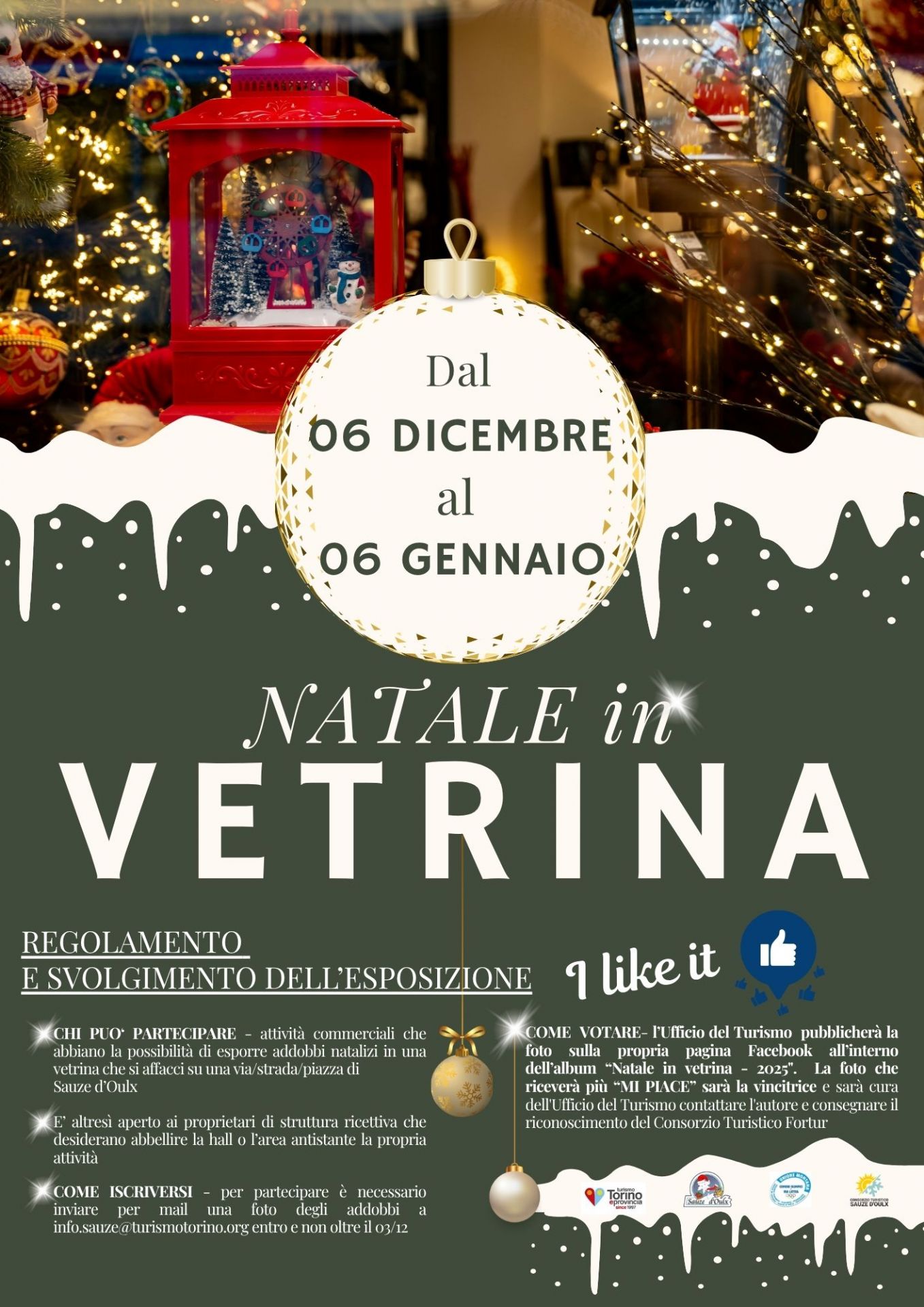 Vota la tua vetrina preferita sulla pagina FB dell’Ufficio del Turismo e aiuta il Consorzio Turistico a scegliere la più bella dell’iniziativa “Natale in Vetrina”. Metti “Mi piace” alla foto che ti conquista di più e diffondi la magia del Natale!
