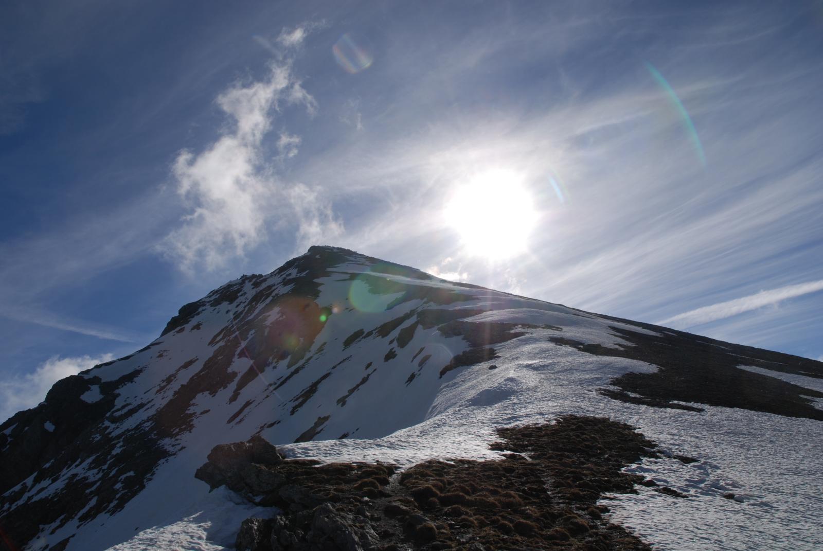 A) proseguire fino alla località 7 fontane (fine della stradina) ed invece che seguire il sentiero nel vallone svoltare a sx risalendo i prati soprastanti. Superare 2 o 3 costoni e ci si ritrova nel pianoro sottostante la Rognosa e la Sotto Rognosa. Risalire i ripidi ghiaioni tenendosi a sx e sbucare in cresta al colletto della Rognosa. Da quì il tracciato percorre la cresta su ghiaioni meno ripidi che non presentano difficoltà.