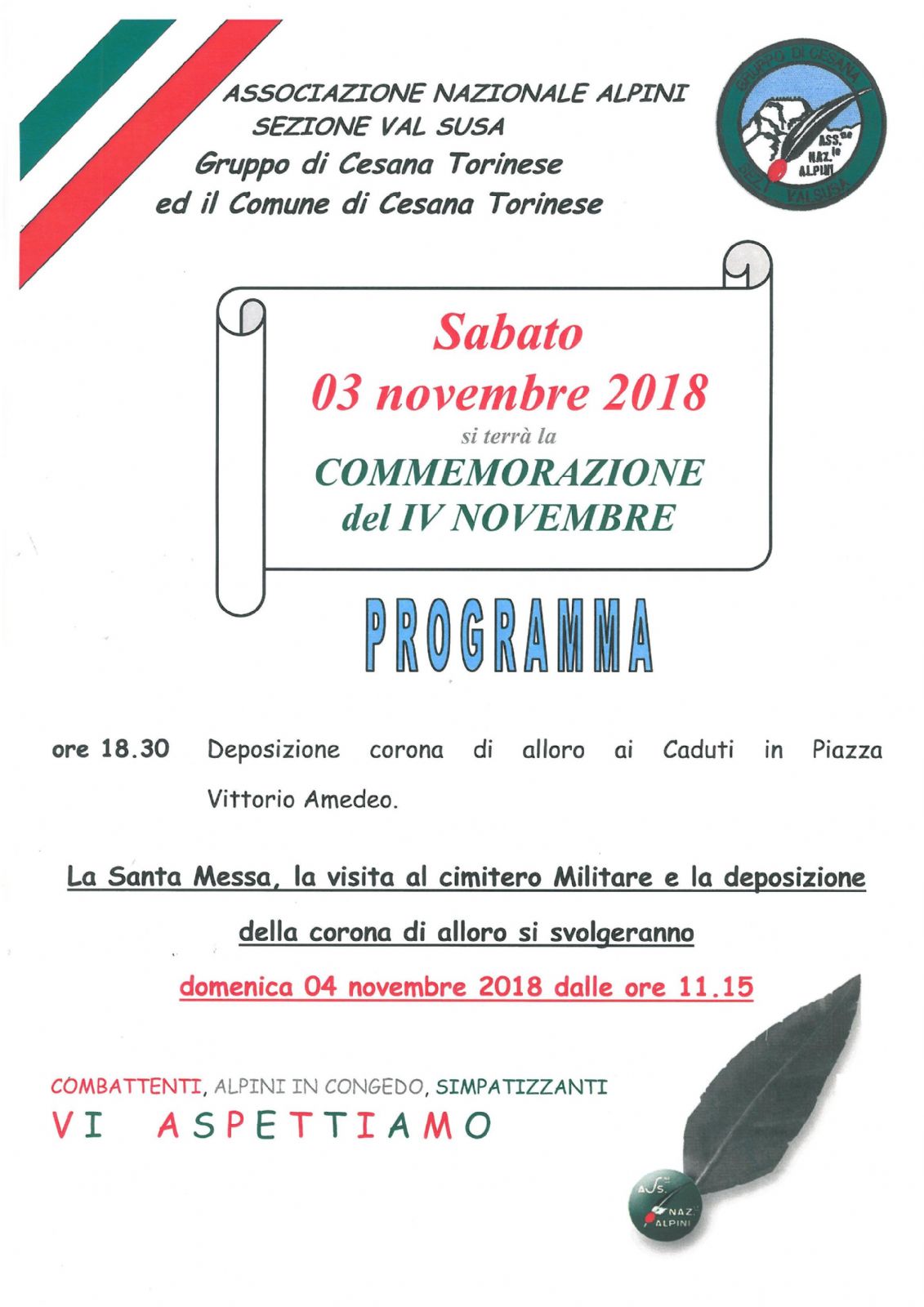 Domenica 4 novembre dalle ore 11.15: Santa Messa, visita al Cimitero Militare e deposizione della corona di alloro