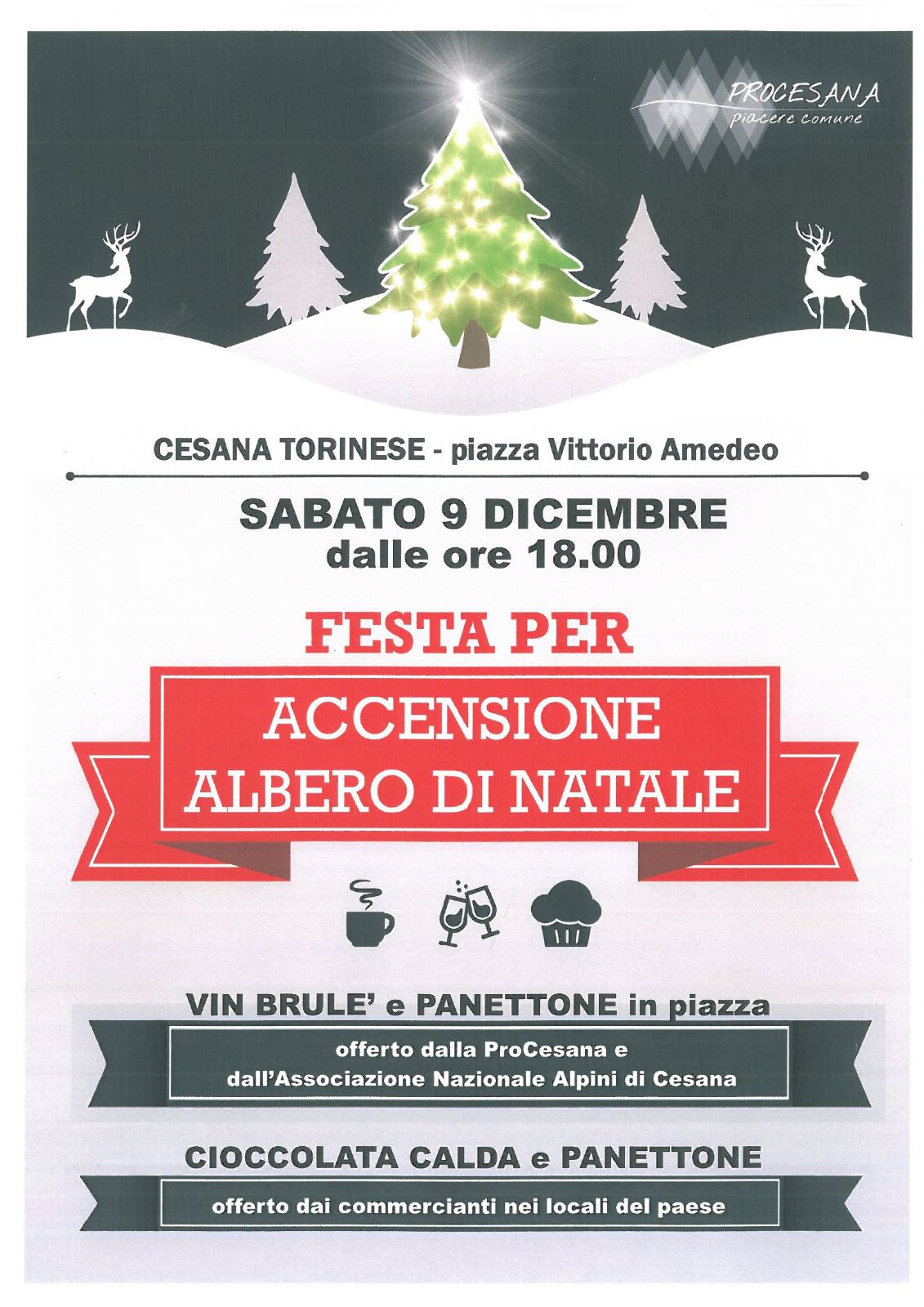 Sabato 9 dicembre dalle ore 18.00 in piazza Vittorio Amedeo accensione dell'albero di Natale.
