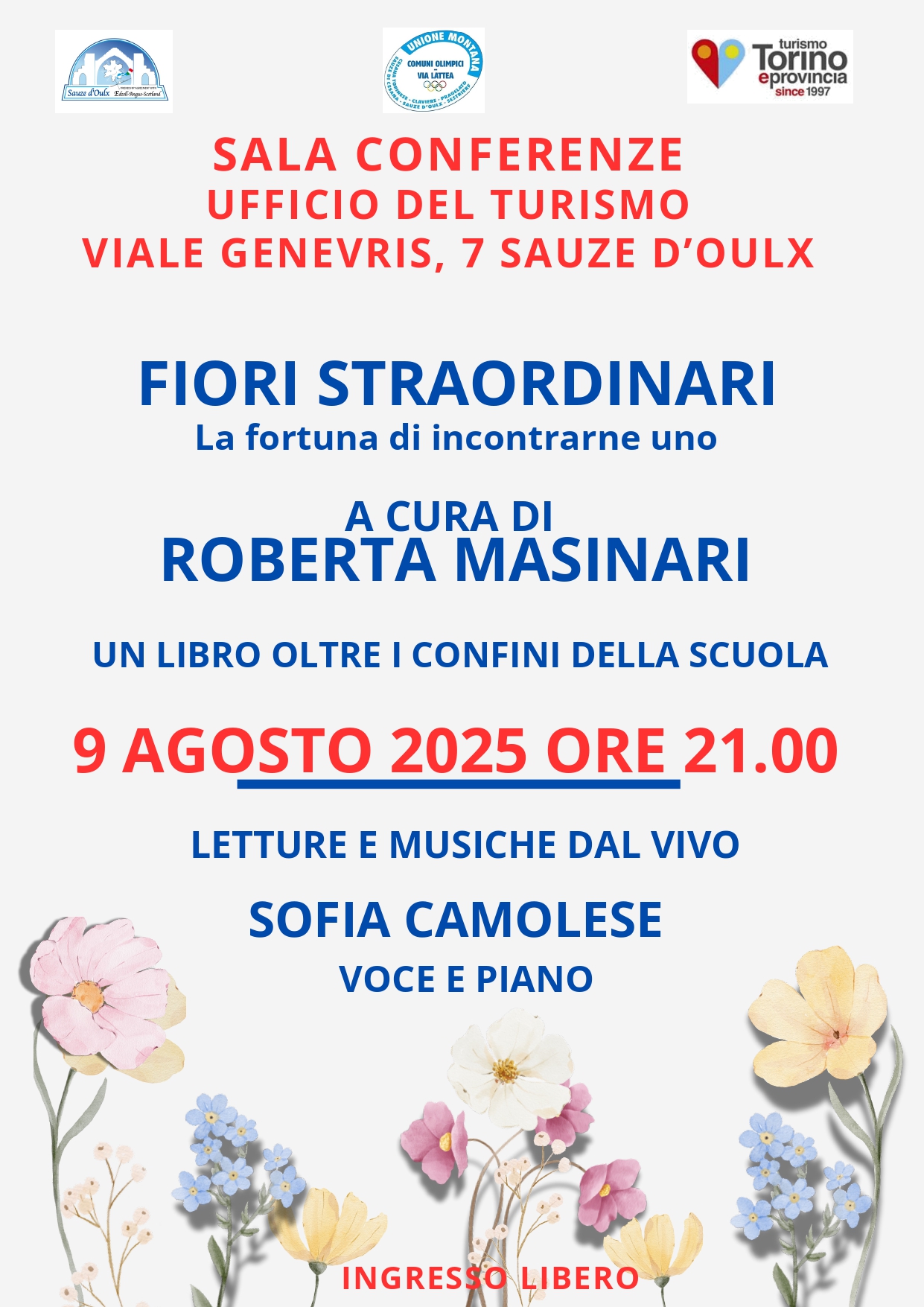 Incontro con l’autore - Presentazione del libro “FIORI STRAORDINARI” di Roberta MASINARI accompagnata dal vivo da SOFIA CAMOLESE piano e voce.
