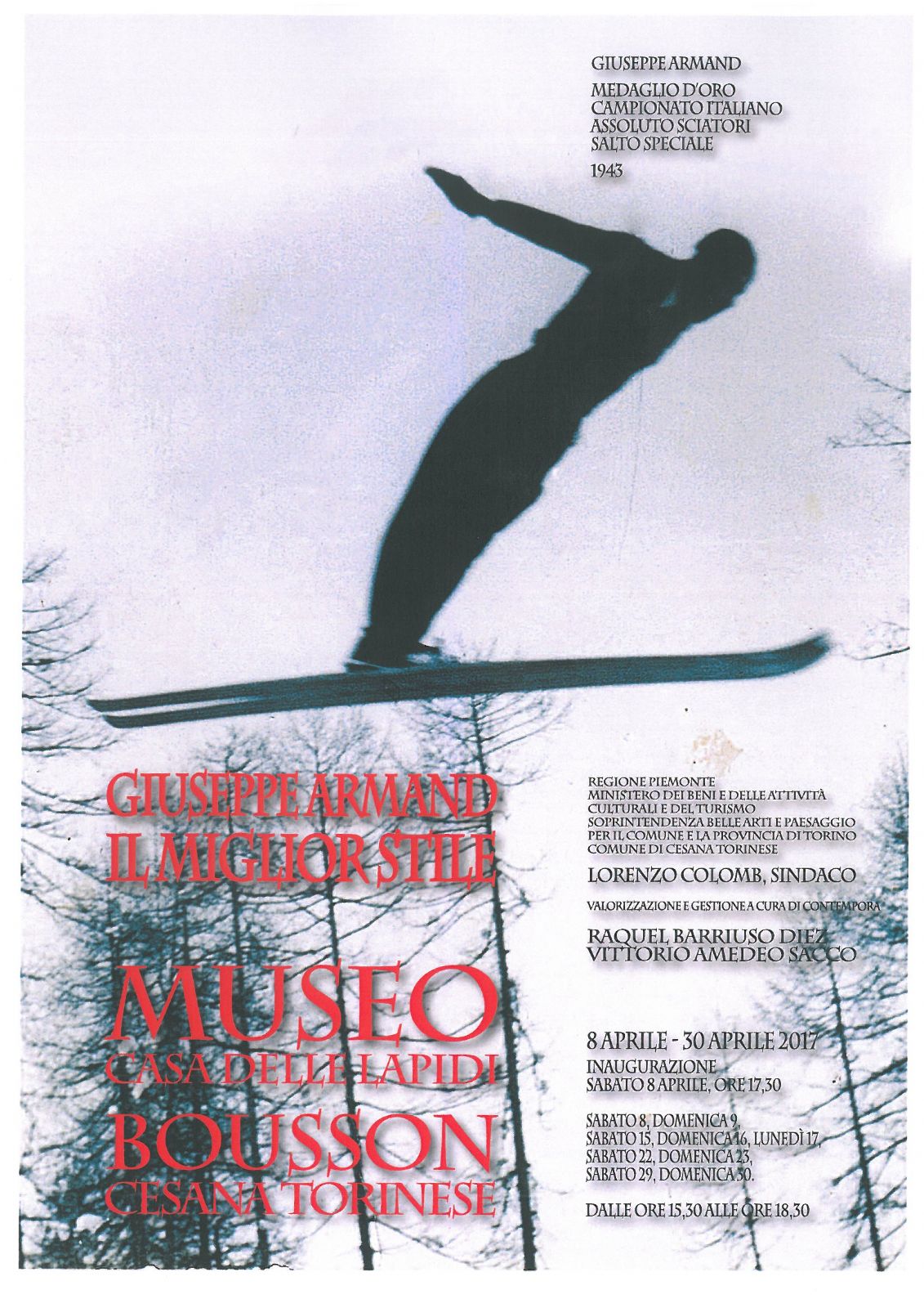 Apertura sabato 8, domenica 9, sabato 15, domenica 16, sabato 22, domenica 23, sabato 29 e domenica 30 aprile dalle ore 15.30 alle ore 18.30.