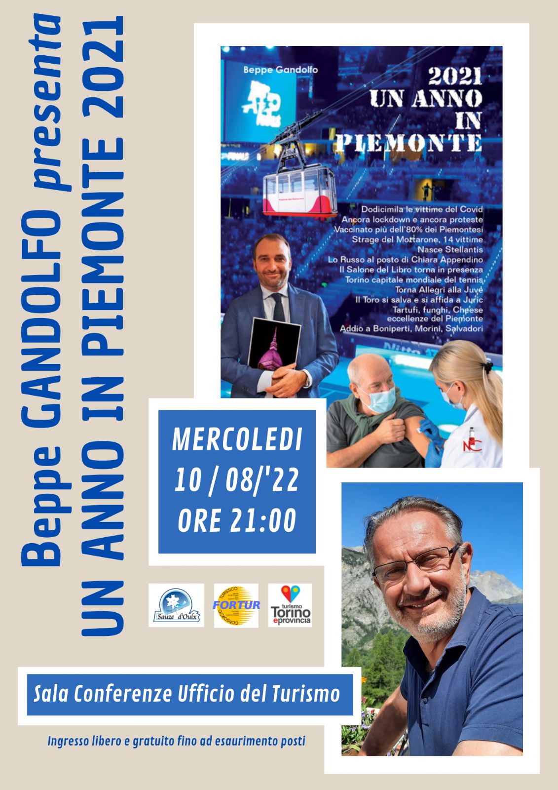Incontro con l’autore - Beppe GANDOLFO presenta il suo libro «Un anno in Piemonte - 2021» (Enneci Communication) il noto giornalista racconta i fatti più significativi dell'anno passato, con l'ausilio di numeri e statistiche. Ore 21.00 - Sala Conferenze Ufficio del Turismo – V.le Genevris, 7