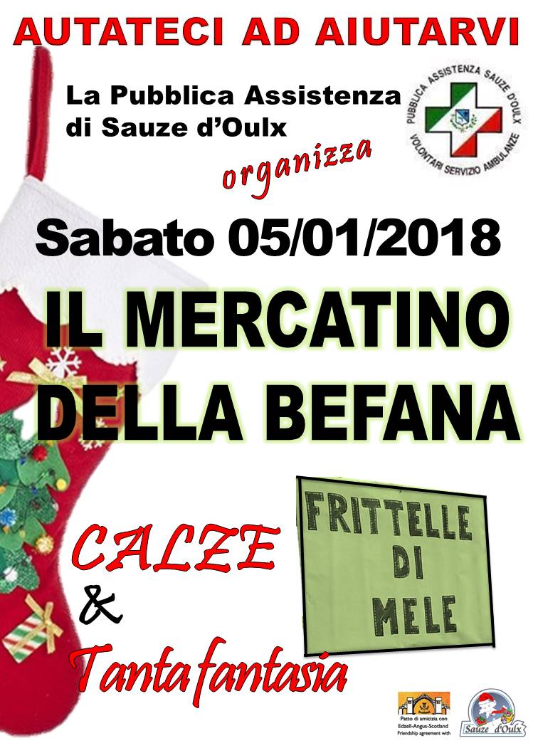 Mercatino benefico con calze e frittelle a cura della Pubblica Assistenza di Sauze d'Oulx.