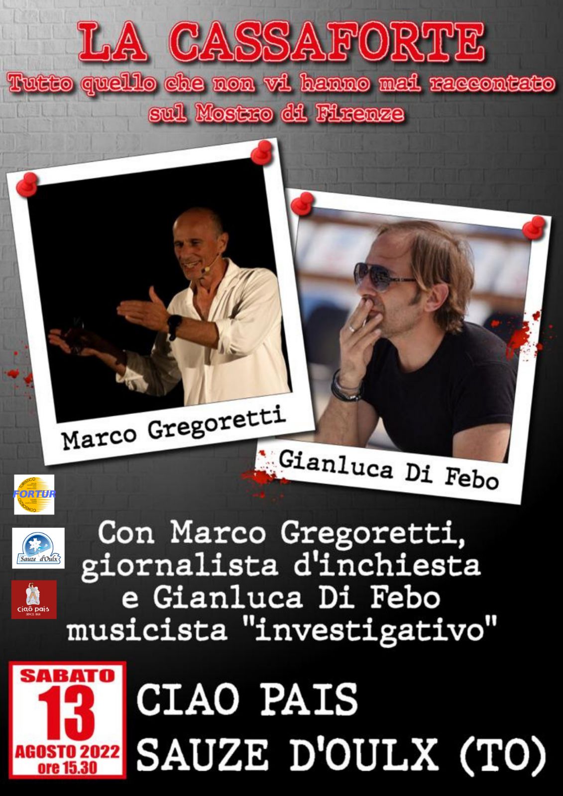 MISTERI IN QUOTA - Si sposta a teatro la rassegna di “misteri in quota” a cura del giornalista di inchiesta ed investigativo Marco Gregoretti. LA CASSAFORTE. Tutto quello che non vi hanno mai raccontato sul Mostro di Firenze. Con Marco Gregoretti, giornalista d'inchiesta e Gianluca Di Febo musicista "investigativo". Ore 18.00 - Teatro d'Ou