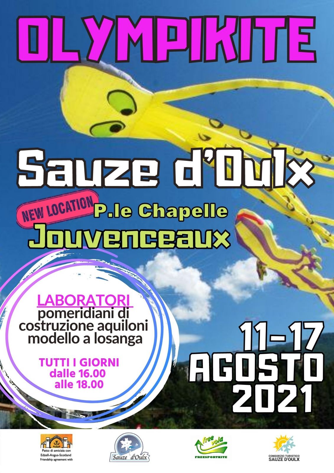 Laboratori pomeridiani di costruzione aquiloni modello a losanga - Tutti i giorni dalle ore 16.00 alle ore 18.00. Accesso libero – P.le Chapelle a Jouvenceaux