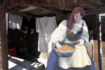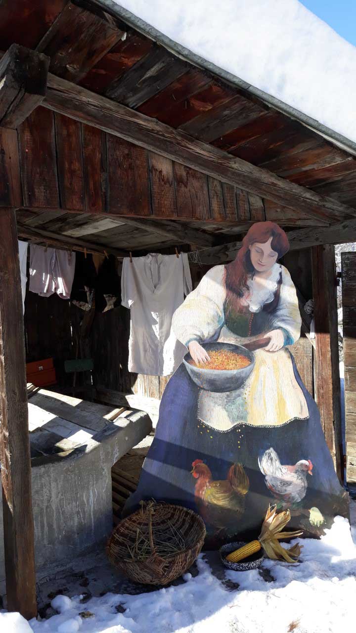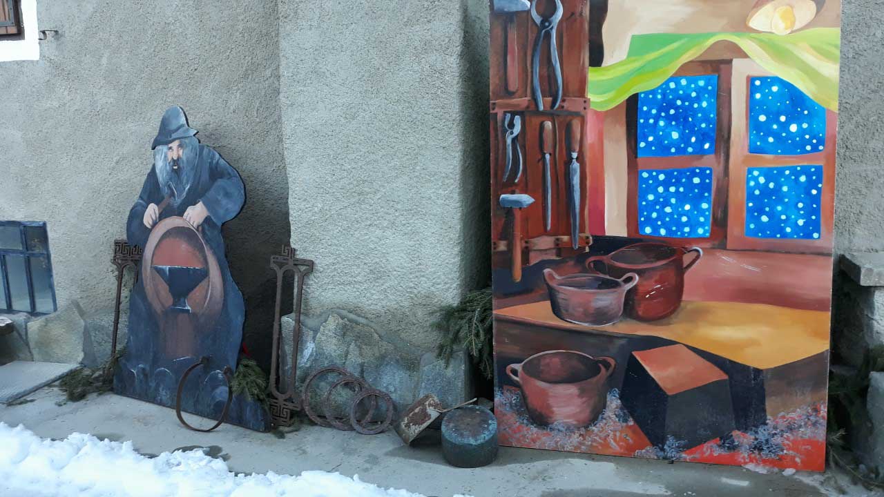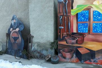 Figure ambientate in momenti di vita quotidiana e vecchi mestieri con oggetti e attrezzi del luogo.
