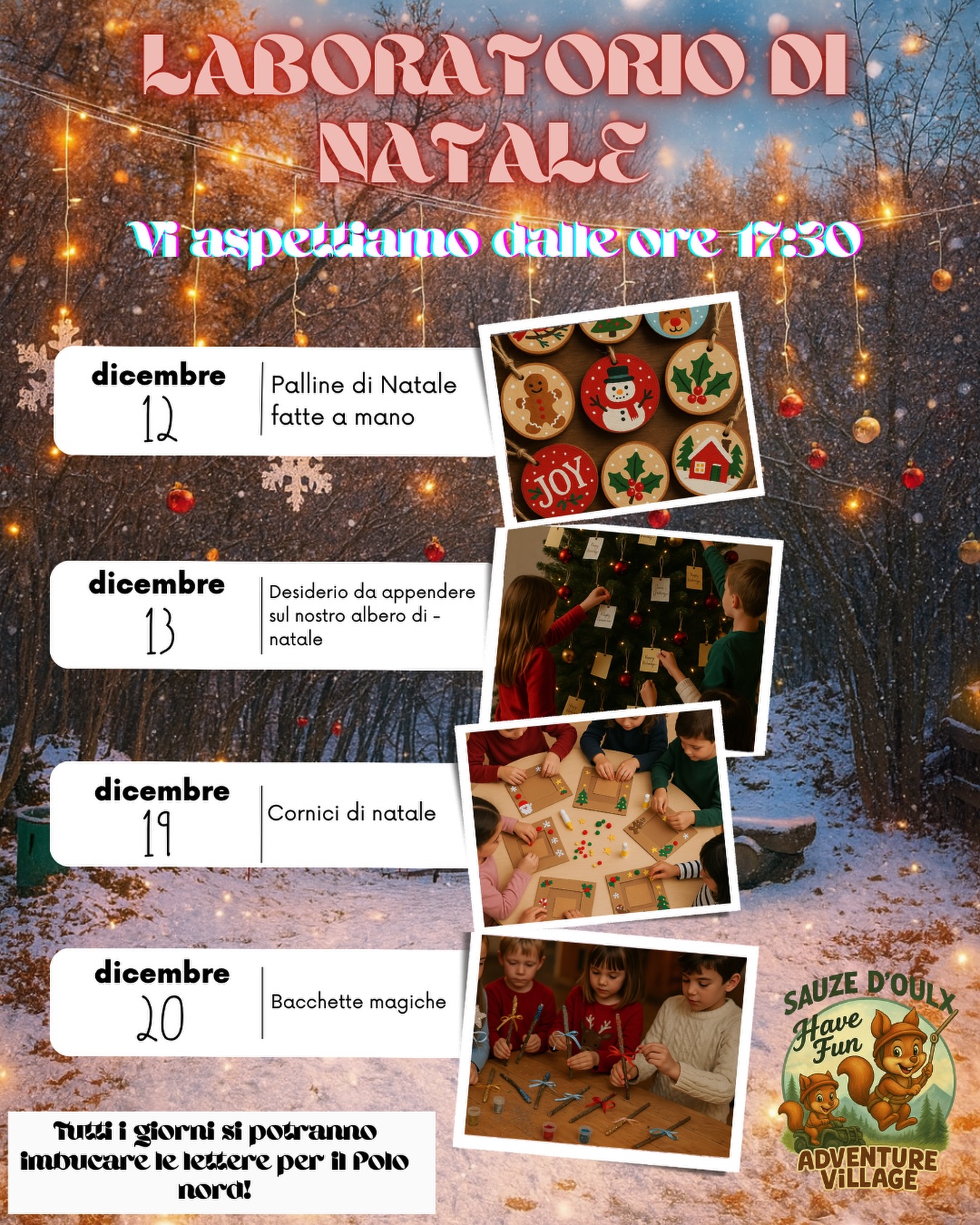 Non perderti la magica atmosfera natalizia: villaggio di Natale, mostra di presepi, percorso per mini quad, foto con Babbo Natale e tanto altro ti aspettano!
