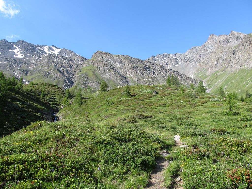 Superato un ruscello si aggira un dosso e si guadagna una spalla erbosa dove il vallone si allarga. Proseguendo ci si porta verso il fondo del vallone del rio Grand Andreit.